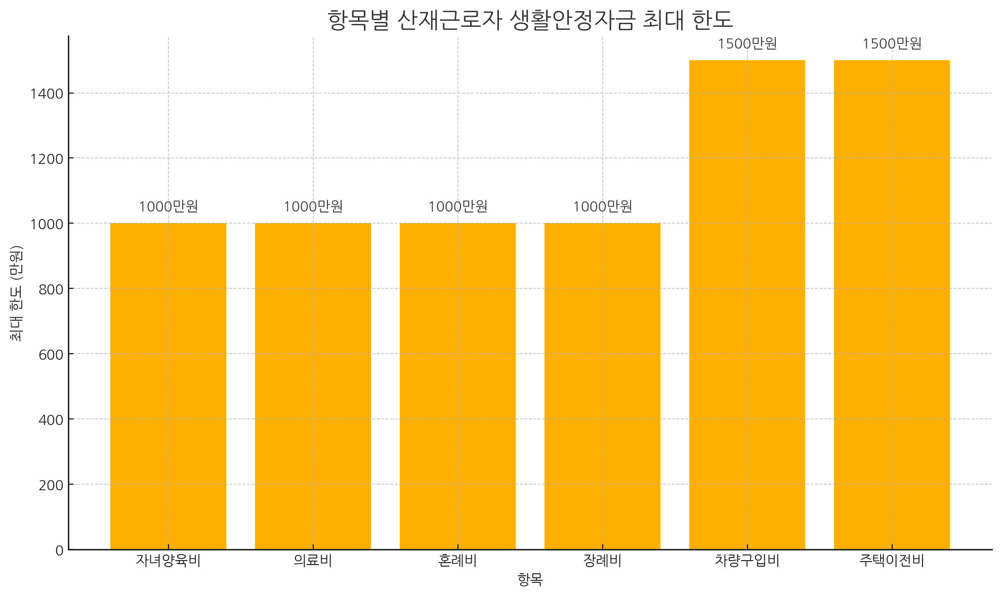 - 차량구입비·주택이전비: 각각 최대 1,500만 원
