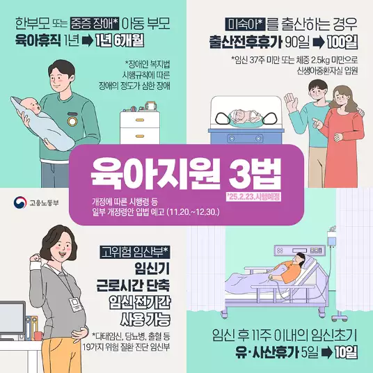 - 출산 전후 휴가: 90일 → 100일으로 확대.
